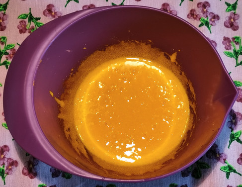 Nel frattempo, montiamo a mano con una frusta i tuorli con lo zucchero: