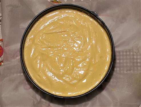 Prepariamo uno stampo rotondo del diametro di circa 22 centimetri ricoprendone la base con un foglio di carta forno e spennellandone le pareti con lo stacca-torta (clic QUI per sapere come prepararlo); trasferiamo il composto nello stampo così preparato, livellandolo il più possibile con un cucchiaio, senza sbatterlo sul piano di lavoro per non vanificare tutto lo sforzo fatto per montare le uova: